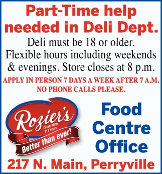 Part-Time help Needed In Deli Dept.