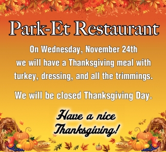 Nov 18, 2021. Park-Et Restaurant Restaurant Ads from The Perryville Republic-Monitor