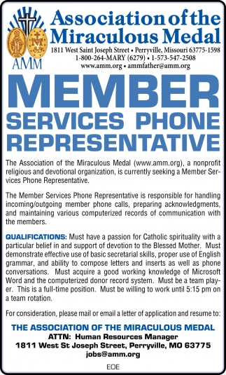 Mar 03, 2022. Association of the Miraculous Medal Jobs Ads from The Perryville Republic-Monitor