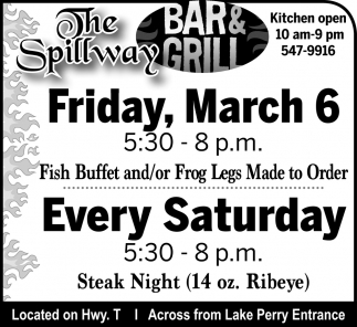 Mar 05, 2020. The Spillway Bar & Grill Restaurant Ads from The Perryville Republic-Monitor
