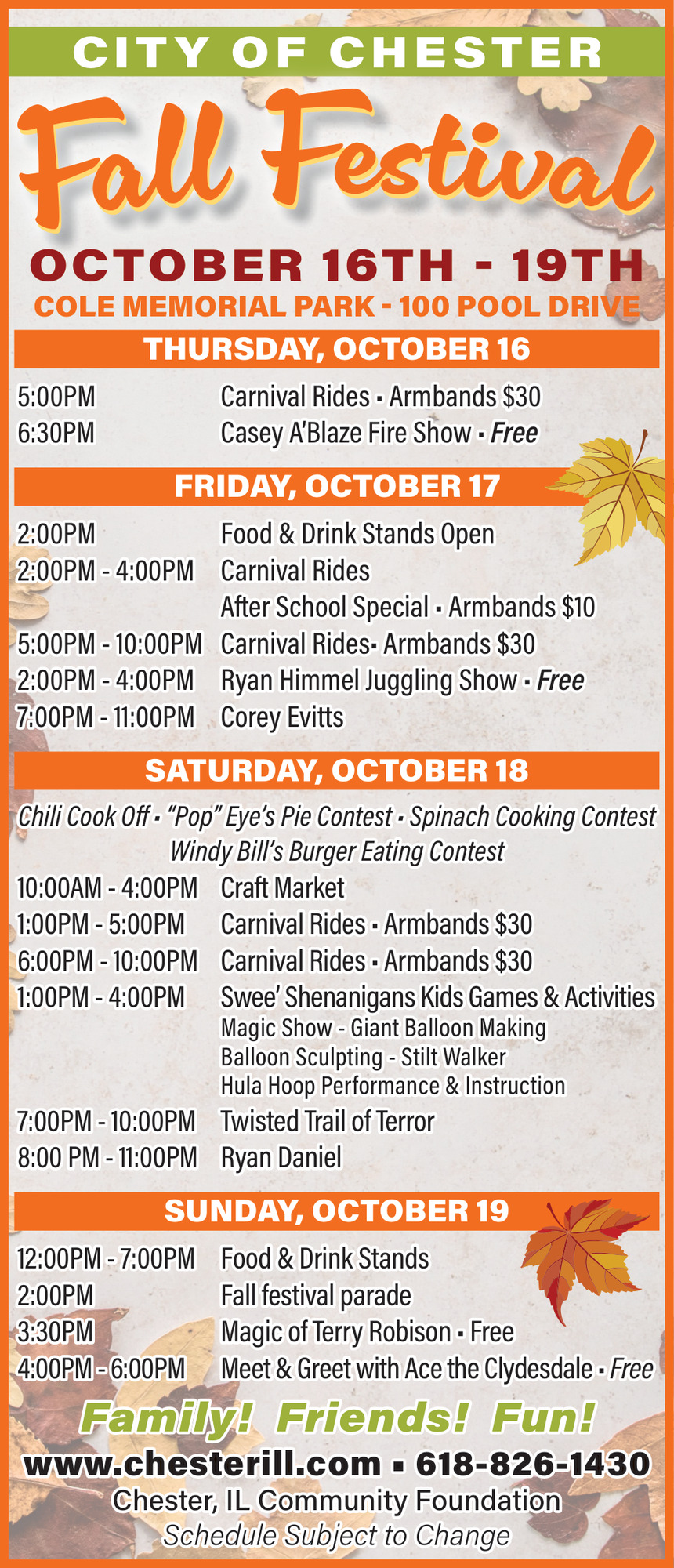 Oct 16, 2025. City of Chester's Fall Festival (October 16-19, 2025) Events Ads from The Perryville Republic-Monitor