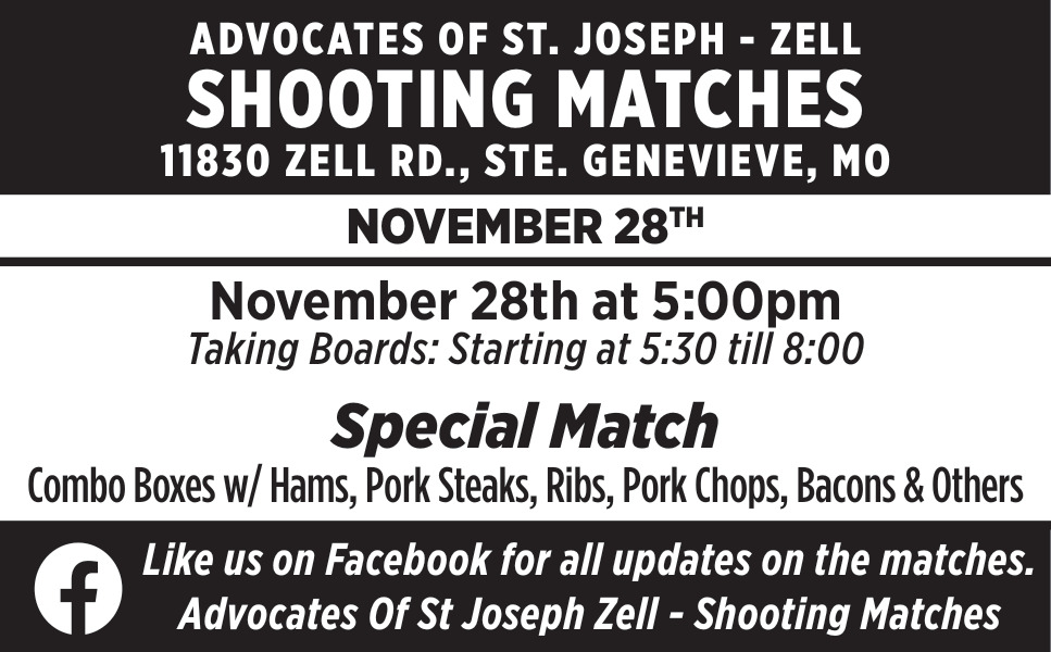Nov 27, 2025. Advocates of St. Joseph - Zell Shooting Matches (November 28, 2025) Sporting Events Ads from The Perryville Republic-Monitor