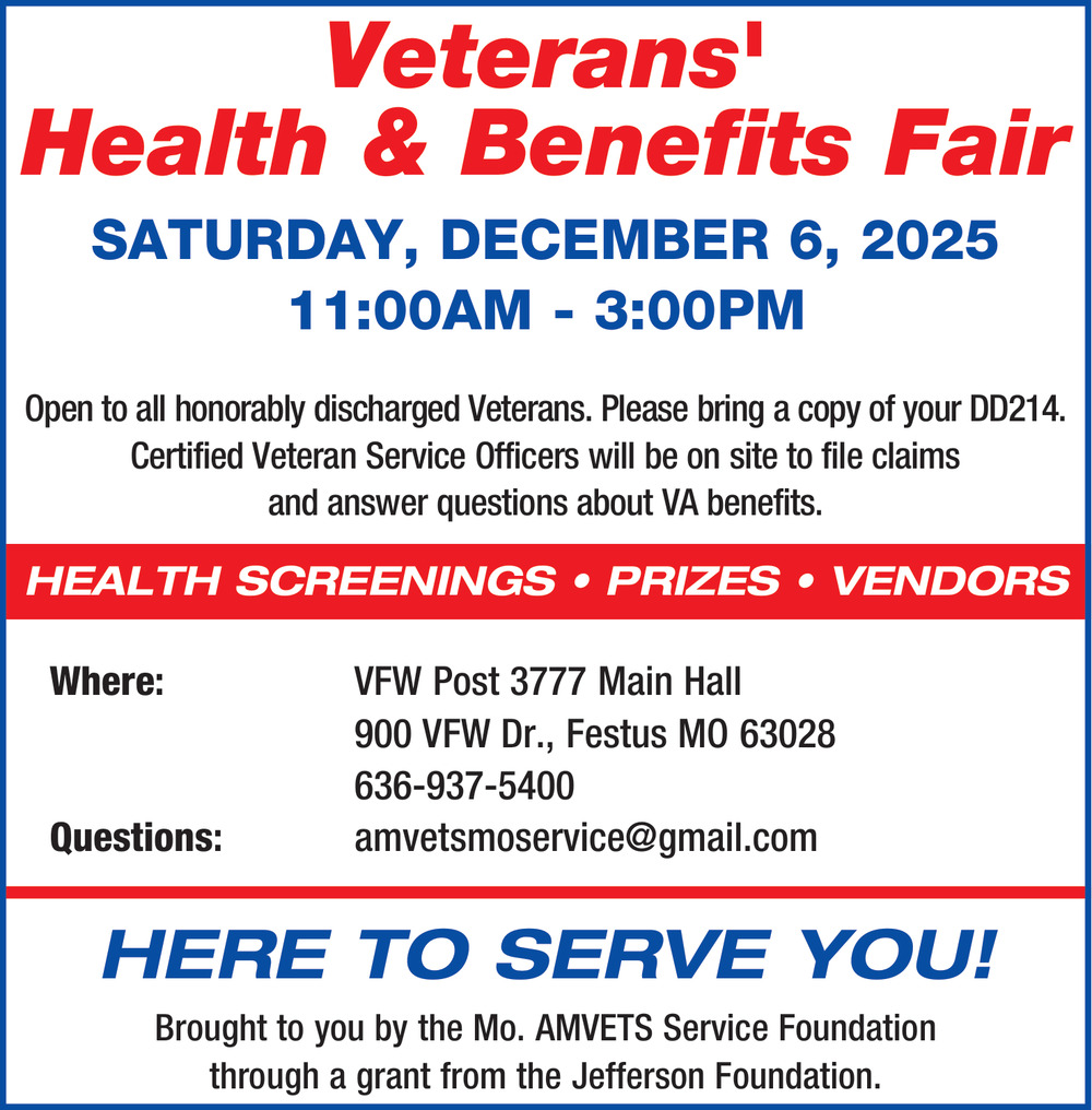 Ads for Veterans' Health & Benefits Fair (December 6, 2025) in Perryville, MO