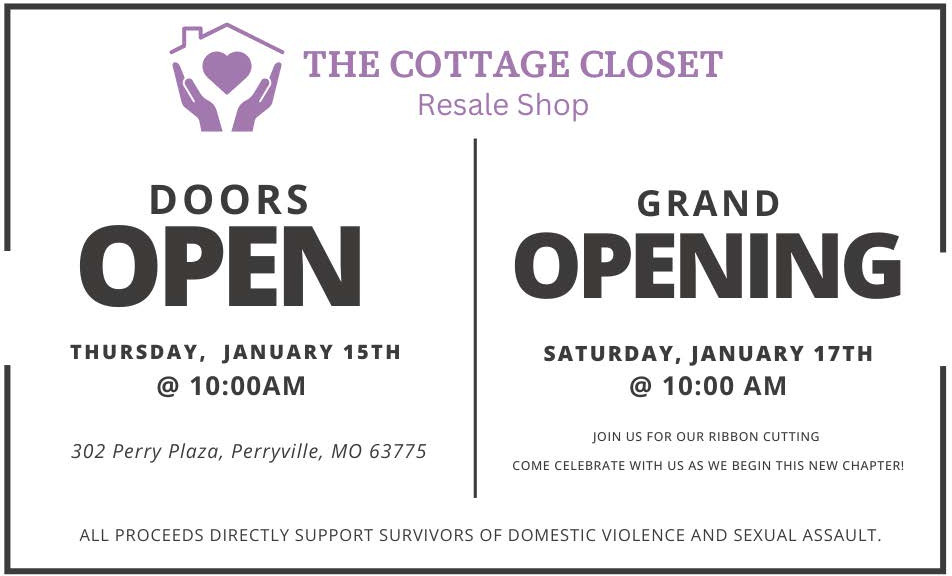 Ads for Cottage Closet Resale Shop (January 15-17, 2025) in Perryville, MO