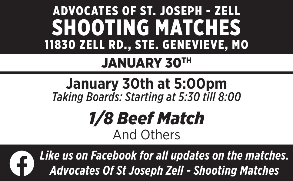 Advocates of St. Joseph - Zell Shooting Matches (January 2, 9, 16, 23 & 30, 2026) Sporting Events Ads from The Perryville Republic-Monitor