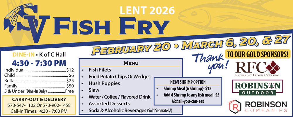 Feb 05, 2026. SV Fish Fry (February 20 - March 6, 2026) Events Ads from The Perryville Republic-Monitor
