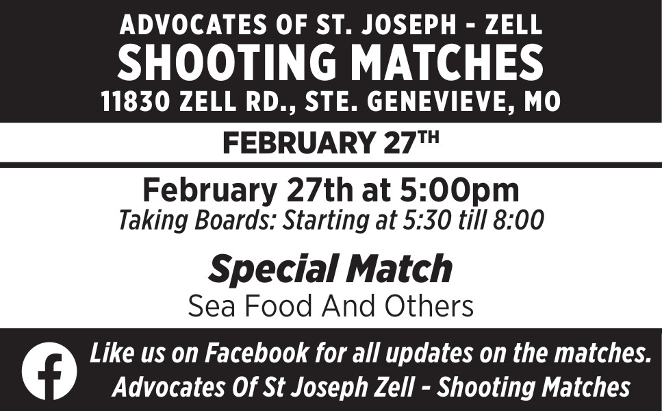 Advocates of St. Joseph - Zell Shooting Matches (February 6, 13, 20, & 27, 2026) Sporting Events Ads from The Perryville Republic-Monitor