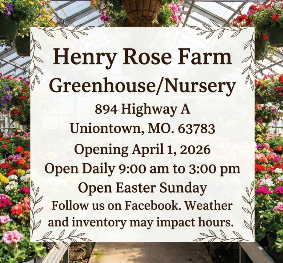 Mar 26, 2026. Henry Rose Farm Greenhouse/Nursery Home & Garden Ads from The Perryville Republic-Monitor