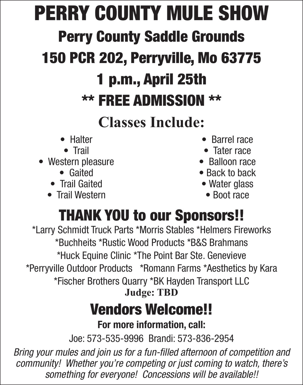 Apr 16, 2026. Perry County Mule Show Events Ads from The Perryville Republic-Monitor