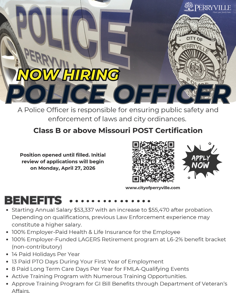• Police Officer Job Opening in Perryville, MO